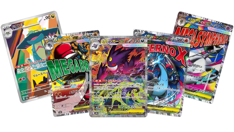 As a High Class set, every pack is a winner. Each booster pack guarantees a Pokémon ex or Mega Evolution card, making this one of the most satisfying boxes to open. Hunt for stunning new rarities like the dynamic Mega Attack Rares (MA), beautiful Art Rares (AR), and the elusive Special Art Rares (SAR) featuring fan-favorites like Mega Gengar and Mega Dragonite!